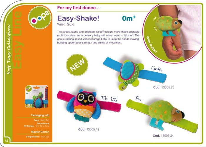 Za pomocą rzepu, grzechotkę można przymocować do rączki malucha dzięki czemu, nie będzie się rozstawał ze swoją ulubioną zabawką!